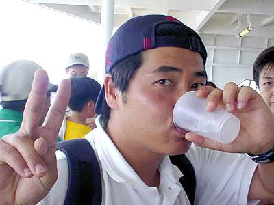12組のみんな元気に遊んで勉強やってるかい?最初にみんなにあった時この組はいったいどうなるんだろうと心配しましたが、班長の3人を中心によくまとまってくれました。元気がよすぎてリーダーが困ることも多かったですヨ。このクルーズでのたくさんの貴重な経験はこれから先大いに役立つことと思います。つらいことがあっても、あの苦しい船酔いをのり越えた君達なら何があっても大丈夫。陰ながらみんなの大きく成長していく姿を応援します。 12組36名ガンバレ