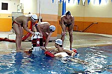 アクア・インストラクター養成研修では、プールでの事故防止の知識及び技能を身につけるため、「JASAライフガードレベル1」の資格取得が義務付けられています。近年、健康増進プログラムとしてプールでの活動は注目を集めていますが、一方で毎年、プールでの事故も発生しており、プールを管理運営する者として、事故を未然に防ぐためのノウハウが特に重要となっています。