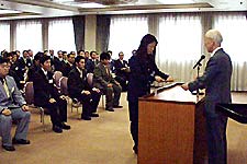 長いようで短かった20日間の研修もこの閉講式をもって終了となります。参加者の皆さんは開講式の時のようにいくぶん緊張気味でしたが、その顔にはたくましさと自信がプラスされていました。参加者45名を代表して工藤伸江さんに修了証が授与されました。