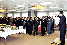 20日間、寝食を共にしてきた仲間ともついに別れの時間が近づいてきました。第11期センター育成士である工藤祐直名川町長による乾杯の後は、研修中の苦楽話に花を咲かせていました。今後は、全国各地での活躍が期待されています。