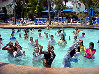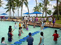 最初はそのノリにちょっとおされ気味だったメンバーもあっという間にハイテンションとなり、海でのマリンスポーツとたくさんのプールアクティビティーに、充実した一日を過ごしました。