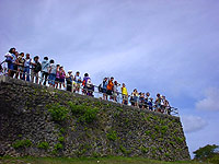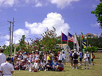 史跡見学に訪れたアプガン砦からはアガニア湾が一望でき、イパオ公園ではB&Gの訪島20周年に建立された記念碑の前で記念撮影をました。