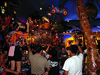 昼食会場となったプラネットハリウッドでは、スタッフの演出によるYMCAやマカレナのダンスで盛り上がりました。