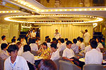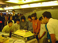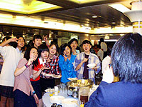 ダイニングでのパーティーの後、全員でパシフィックホールに移動。正面のスクリーンには、初日の受付でドキドキしていた姿が映し出され、順次今日までの主な出来事がスライドとして上映されました。
