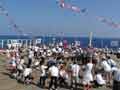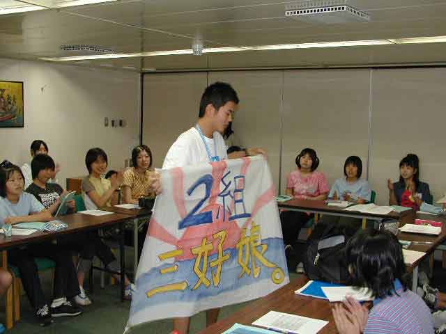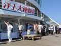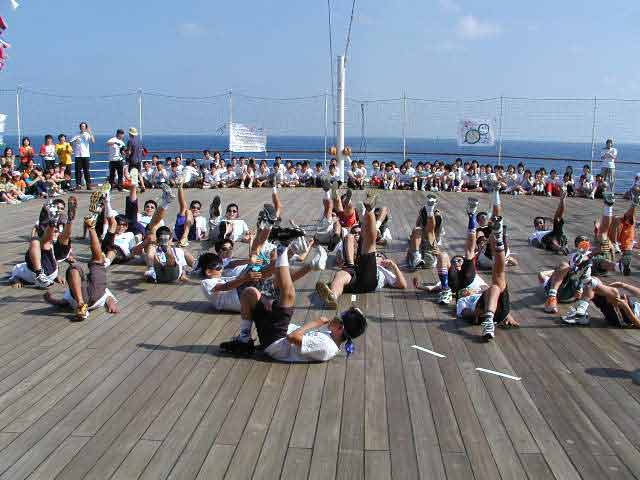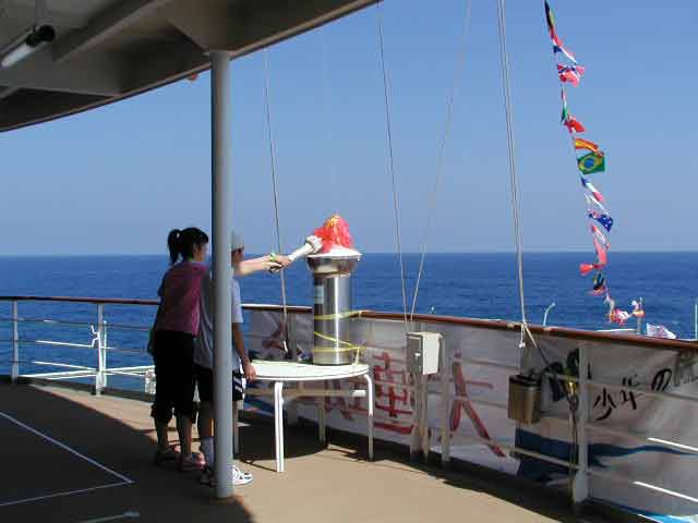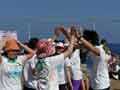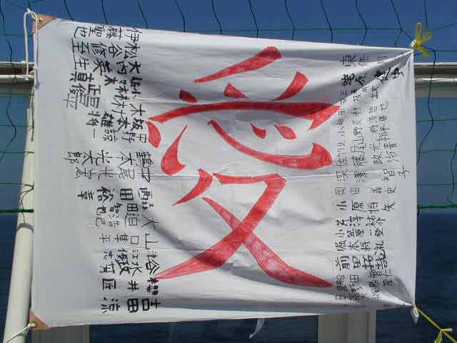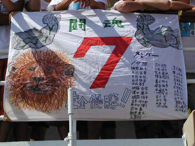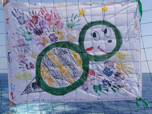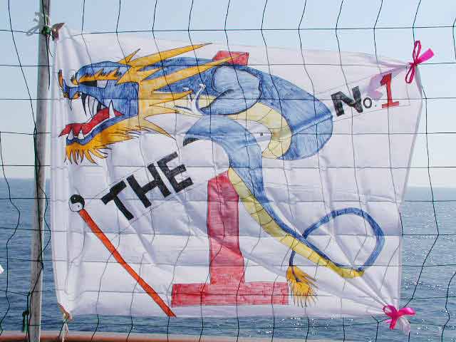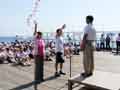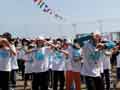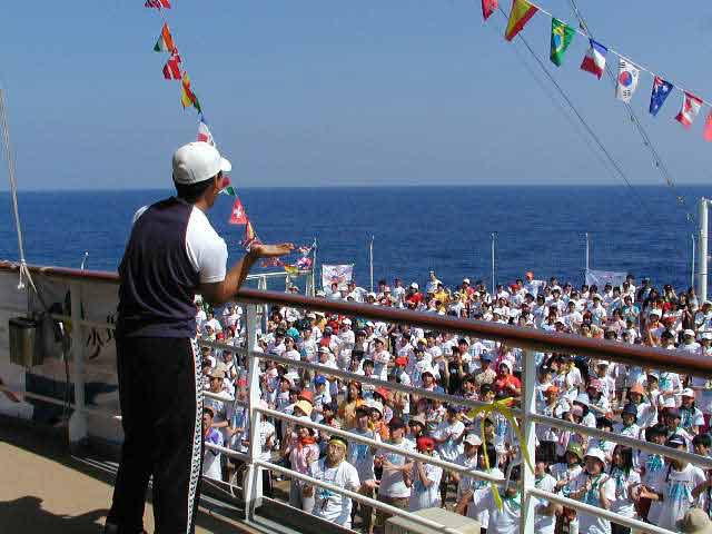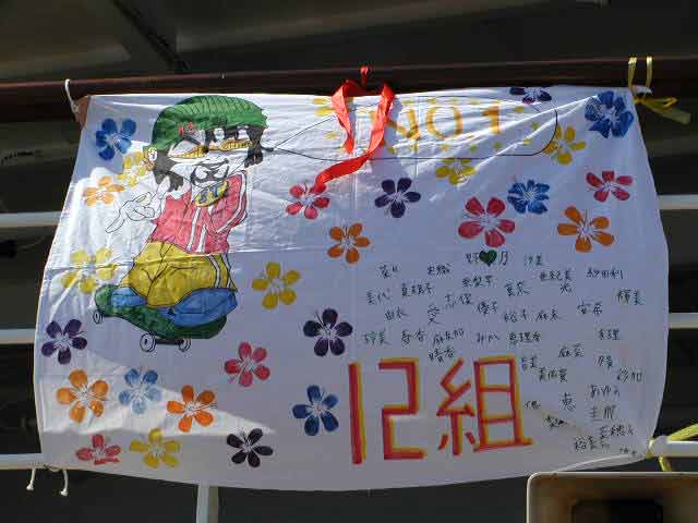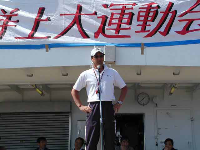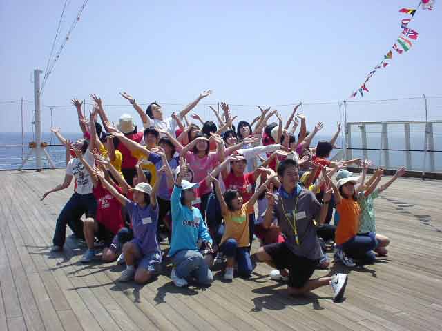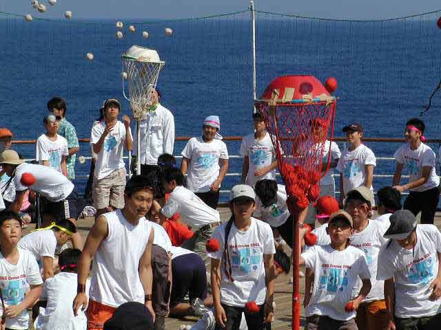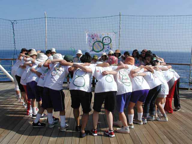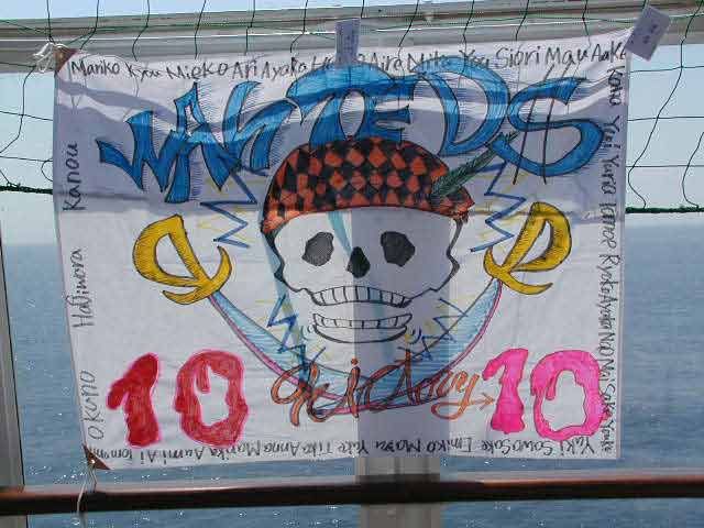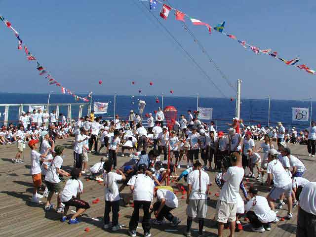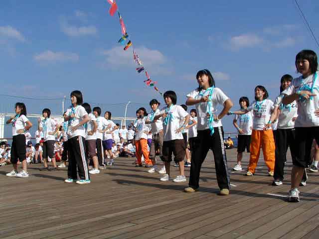真っ青な空の下、今日は力いっぱい洋上フェア♪みんなで一生懸命に練習した応援合戦はバッチリ決まってたね!