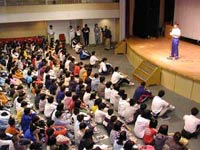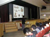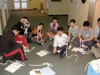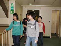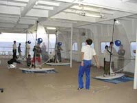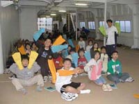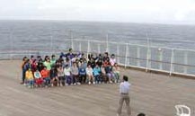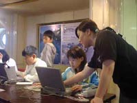 出航直後からふじ丸には、E−MAILによるたくさんの応援メッセージが届きました。家族やお友達に返事を送りたいメンバーや、初めてメールに挑戦しようとする人のために、船内には4台のパソコンが設置されています。食事の時間や自由時間などには、リーダーの手ほどきを受けながらメールを送る姿が見られました。