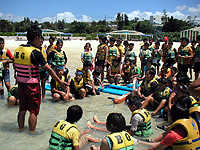 僕の住んでいるところは、海が遠く山なので、青い海は始めて見たし、すべて始めての経験でした。それにマリンスポーツも初めてやったので良くわからなかったけど、わかるととても楽しかったです。またやりたいです。 |