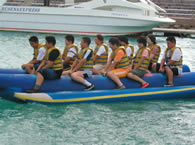 | 焼けるような日差しの中、透きとおった海で、初めてのマリンスポーツ体験。 やっぱり自然はすごい!! |