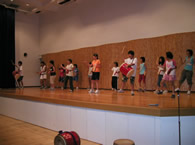 各組に分かれてエイサー発表会。 恥ずかしかったけどおもしろかった〜。 |