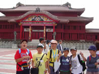 首里城をバッグに。 みんなちょっと王様気分。 |
