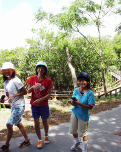 ![]() マングローブの森を観察中。 見たこともない生き物にびっくり!! |