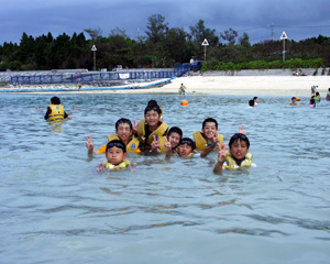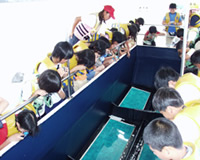 ![]() グラスボートで海の中を観察中。 「魚やさんごが、見えたよ!! 」 |