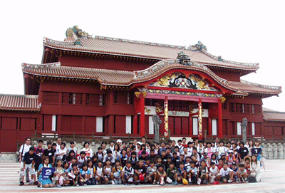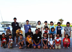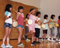 みんなでエイサー体験。舞台で発表するなんて、緊張しちゃうけど、 音楽がなったら、もう夢中!! |