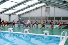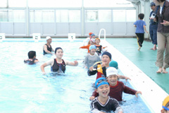 水慣れをするために、着衣での水中ウォーキング