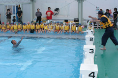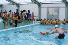 7)デモンストレーション(救命浮環やロープとペットボトルを使用した救助法)