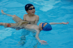 友達の補助で、安心して浮き身を体験