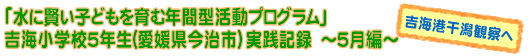 吉海小学校では、ふるさとの海を学ぶことで、ふるさとを自慢できる人材の育成を目指し、5年生の「総合的な学習の時間」のテーマを「吉海PR大作戦」と設定。年間を通して、B&G財団の考案した「水に賢い子どもを育む年間型活動プログラム」を活用し、吉海の海について学んでいきます。