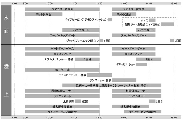 このイベントでは、スーパーキッズボートやバナナボート、ヨット・カヌーの試乗会のほか、熱気球の体験会などが行われます(先着順、一部年齢制限あり)。ジェットスキーのエキジビションもあり、子どもから大人まで、水に触れ、水に親しめる楽しめるイベントになっています。