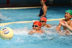 甘木海洋センターは「ノータッチボール」と「水中4人5脚」で好成績を収めることができました。