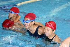 水中4人5脚 「いっち に いっち に」と掛け声をかけました
