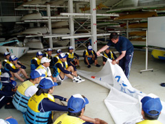この研修には、全国19県21市町から集まった地方自治体職員など男女21名が参加。地域住民の方々の健康づくりを支援する指導者を目指し、35日間の日程で、ヨットやカヌーなどの実技及び指導法、幼児の運動プログラムや高齢者の転倒予防プログラムの実習ほか、救急法や海洋環境などを学びました。