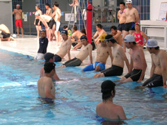 大村さんは、水泳が得意であったこともあり、自主トレーニングの時間に水泳の苦手な研修生に対して、根気よく、丁寧に面倒を見てくれました。