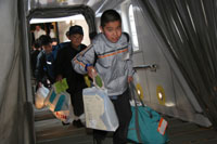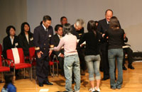 解団式終了後、みなさんがお世話になったリーダーから、一人ずつ挨拶がありました。リーダーのまとめ役でもあった1組森田リーダーは、「あっという間の6日間だったね。今、心に刻み込まれた言葉を一生の宝物としてください」と挨拶。また、いつもメンバーに囲まれていた4組の松岡リーダーは、「みんなが兄弟のように感じます。6日間でみんなをこんなに近く感じられるのも、みんなのおかげです!ありがとう」と話し、目に輝くものを浮かべていました。また、メンバーからも涙で言葉がつまるリーダーたちを、「がんばれー」と励ますかけ声が飛び交い、立場が逆転。怒られたときもありましたが、それが愛情だということを肌で感じていたようです。