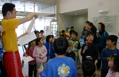 濡れているTシャツは、着替えるのが大変!!「着衣&お着替え100mリレー」。午後3時半頃には、他の海洋センターの入力も終わって、玉村海洋センターから参加したチームの結果順位が分かりました。早速、関さんが、事務所のプリンターでプリントアウトし、結果発表をしました。 普段は「全国」を意識することはほとんどないためか、自分のチームが全国で何位に入ったのか、興味津々で、食い入るように結果を見ていました。