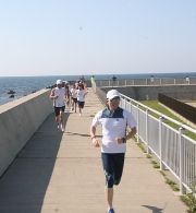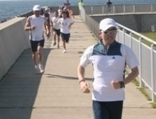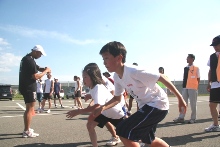 プログラムの最後、14時30分からはラン。 正しいランニングフォームについて説明を受けた後、スキップやサイドステップほか、段差を活用した練習など、いろいろなステップ練習を行いました。ランの練習の最後には、参加者全員での模擬レースが行われました。