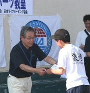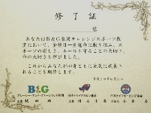 全課程を修了した参加者には、B&G財団広渡専務理事から終了証が手渡されました。すべてのカリキュラムを終えた参加者は、とても満足した様子でした。