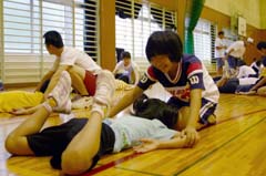 まずは、準備運動です。ペアになってストレッチを行いました。