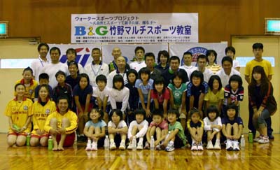 天候にはめぐまれませんでしたが、親子8組33名の参加者は元気よく集合し、豊岡市教育委員会村田次長の挨拶で開講式が始まりました。 この日の種目は、カヌー、ライフセービング、トライアスロン(スイム・バイク・ラン)で、普段はなかなか体験する機会がないスポーツの基礎を楽しく学びました。