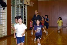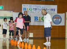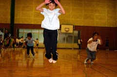 ランニングドリル(補助運動)を習いました。これは、適切かつ効率的なランニングフォームを身につけるのに役立ち、ウォーキング(速歩)・スキップ・ランニングの3つの運動があります。