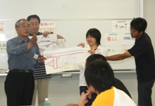 つぎに、グループ毎に課題(統計データ)が渡され、その事実を“インタープリテーション”の手法を活用して、どのように伝えるかを検討し発表しました。昼食後には『日本ハワイ移民資料館』の見学も行いました。