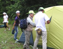 小野田さんからテントの張り方の説明を受けます