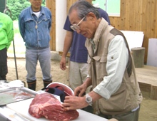 小野田さんから肉のさばき方を習います