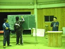 参加者18名が集合し、13時から開講式が行われました。開講式では、B&G財団 広渡英治 専務理事が、「平成19年度からの新規事業である、この親子ふれあい事業は、親と子が協力し、話し合い、お互いが成長する機会として、日常では体験できない多彩な自然体験プログラムを提供し、“親と子の絆”への取り組みとして実施するものです。このプログラムを全国10ブロックで展開するため、プログラム普及の担い手となる指導者を養成していきたいと考えています。参加された皆さんは、このセミナーでより多くのことを学び、参加者同士の情報交換をしっかりしていただき、今後の事業展開のためのネットワークをつくってほしい」と挨拶。