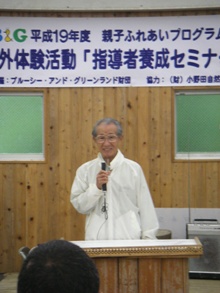 このセミナーは(財)小野田自然塾の協力を得て、「青少年及び親子を対象とした自然体験プログラムの普及の担い手となる指導者を養成すること」を目的としています。