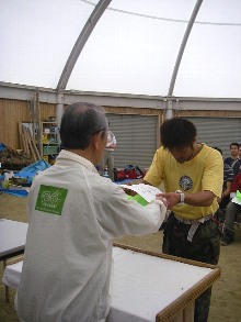この日は、雨が強く、テントの撤収ができず、台風4号の接近もあったため、参加者に所感・意見アンケートを記入してもらった後、時間を早めて閉講式を行いました。閉講式では、小野田理事長から参加者全員に修了証が手渡され、充実した4日間のセミナーが終了しました。