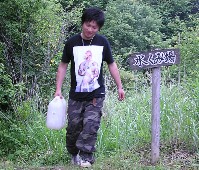 久慈川源流“天女の泉”で、のどの渇きを癒します