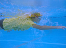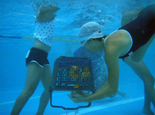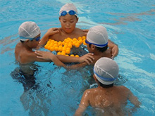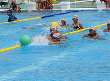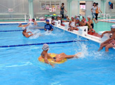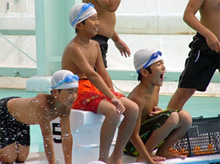 昨年に引き続き可児市B&G海洋センターで「アクアキッズフェス」が開催されました。8月1日(水)に全国で同一日に開催される水中運動会ということで、今回可児市では市内の子ども会を対象にして高学年の部4チーム、低学年の部3チームの28人が集まりました。他のチーム、また、全国のチームと楽しみながらタイムを競い合いました。