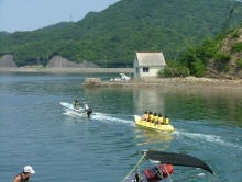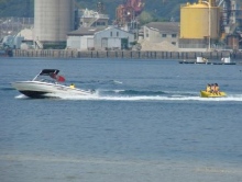 楽しそうな笑顔で息のあった仲間たち<バナナボート体験>