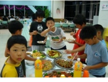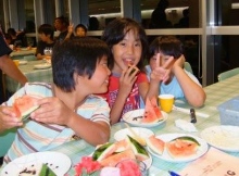 食事の前に南あわじ市教育委員会生涯学習文化振興課 岸上敏之 課長より「明日のカヌー交流大会に参加できること、また今日の出来事を振り返ってください。当たり前のように過ごせている今という時間は、家族の人や周りにいるスタッフなどのみなさんが準備してくれているおかけで、楽しい時間を過ごせています。感謝する気持ちを改めて感じてください。そして、明日のカヌー交流大会でも楽しんでがんばってください」との話がありました。子どもたちの顔もハッとした表情で、自分たちが参加できることのありがたさをそれぞれが感じていた様子でした。お待ちかねの食事