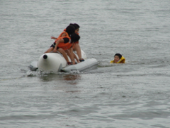 参加した子供たちは、「初めてでもカヌーは乗れたよ」と楽しげに語ってくれました。常に一番人気はバナナボートで、落ちて水にぬれる子もいましたが、乗りたい参加者が多く、みんな「時間が少ない」と残念そうでした。