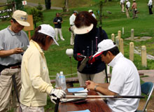 全ホールを終えると、同じ組の選手とスコアをチェックして本部に提出