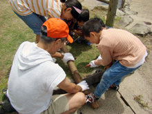 のこぎり教室!?流木を小さく切り分けます