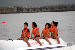 一番の人気はバナナボートで、フィールドでは、歓声が絶えませんでした。