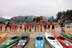 カヌーでは、吉里吉里海岸の所以(キリキリとはアイヌ語で『白い砂浜』のこと)であるきめ細かな砂浜の上で、パドルの使い方のレクチャーを指導員から教わりました。