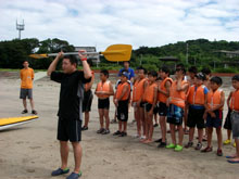 これからカヌー体験です。指導者の方からパドルの使い方を教えてもらいます