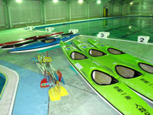 プール一面に色鮮やかなカヌー。狭いのにみんな集まりすぎじゃ…?仲がいい証拠!?笑